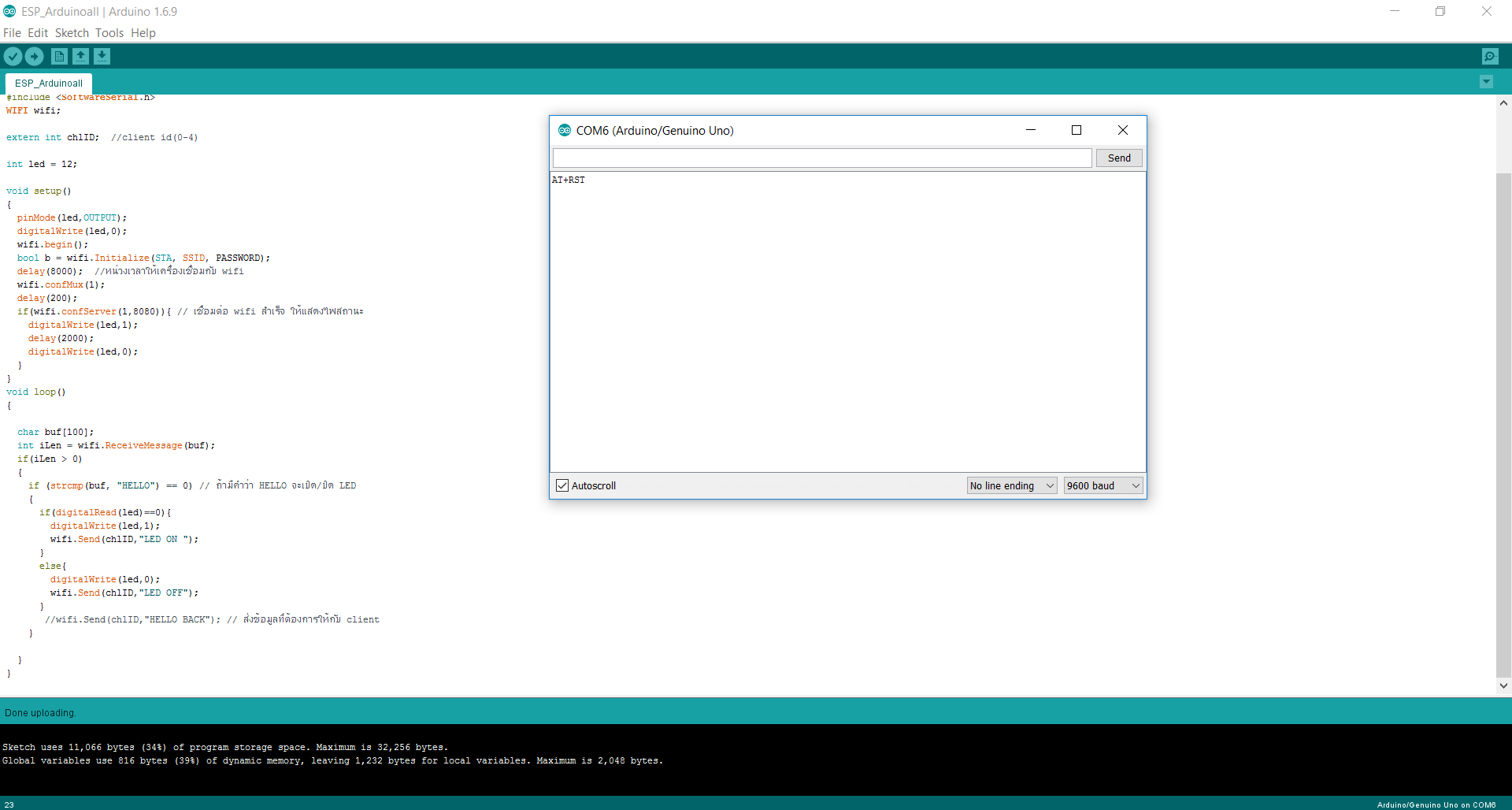 ค้างที่ AT+RST (Code Arduinoall) ส่วน Code อื่นก็ไม่ทำงานเช่นกันครับไม่มีการตอบสนองกลับ